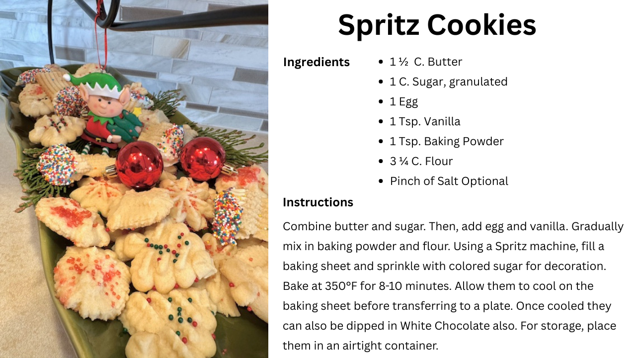 Whether you're new to using a cookie press or looking for a dependable family recipe, this guide will help you make perfect spritz cookies every time. Get ready to fill your kitchen with the cozy aroma of vanilla, almond, and holiday cheer! ?✨